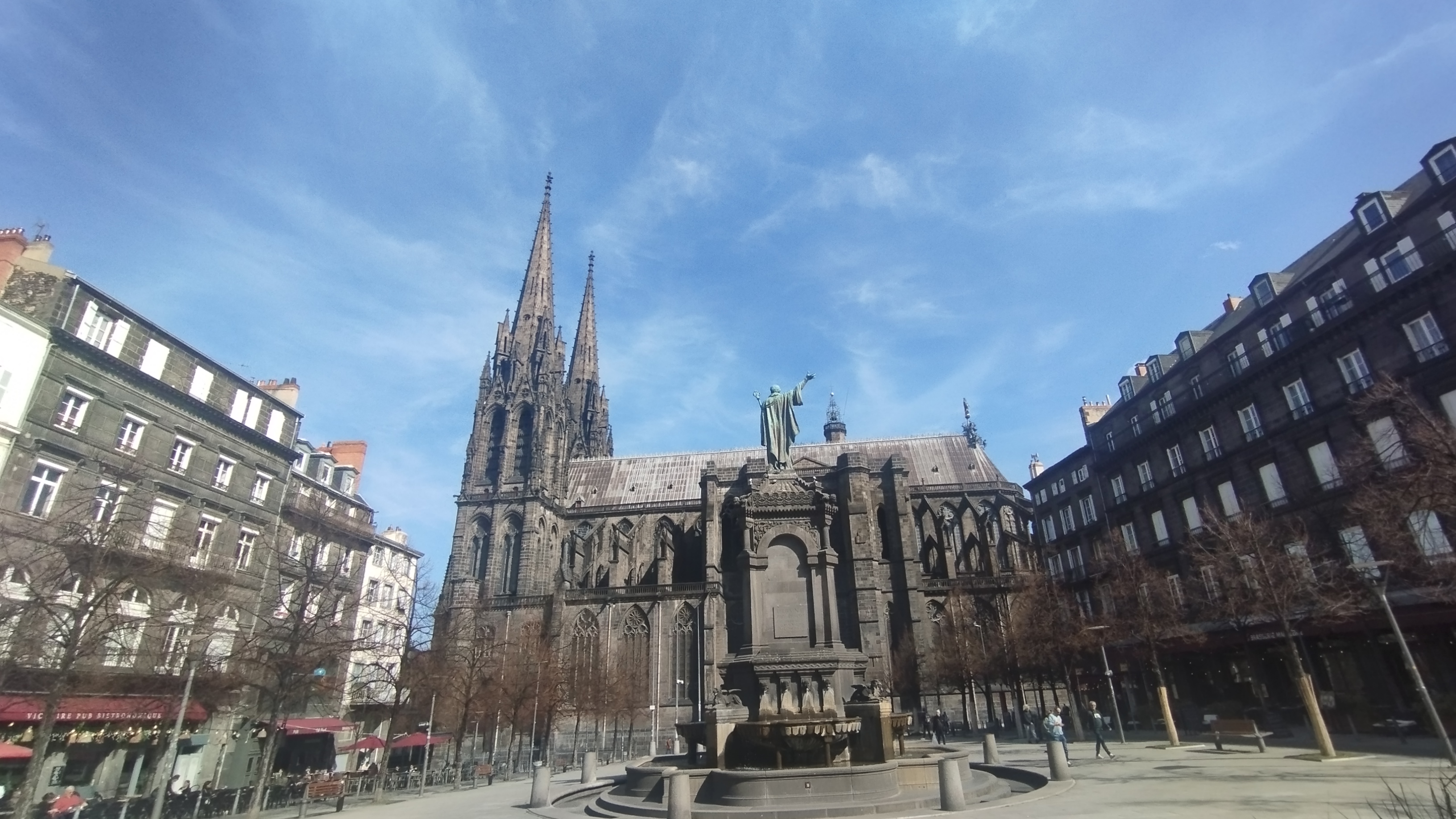 Vamos bien de agua, por lo que hoy no toca repostar agua ni vaciar, por lo que arrancamos en dirección a Clermont-Ferrand. Esta es una gran ciudad y decidimos aparcar en una área de pago en las afueras, a sólo 50 metros de la parada de tranvía que, en ocho paradas, nos lleva al centro. No vale la pena callejear con la Peregrina y buscar un embolado...